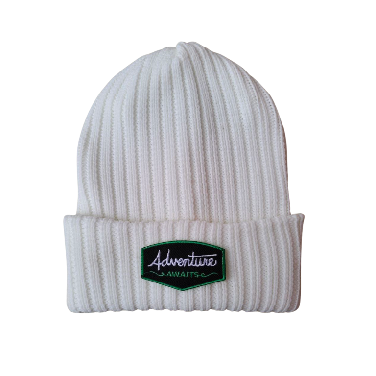 Adventure Awaits Beanie Hat Knit Premium – White
